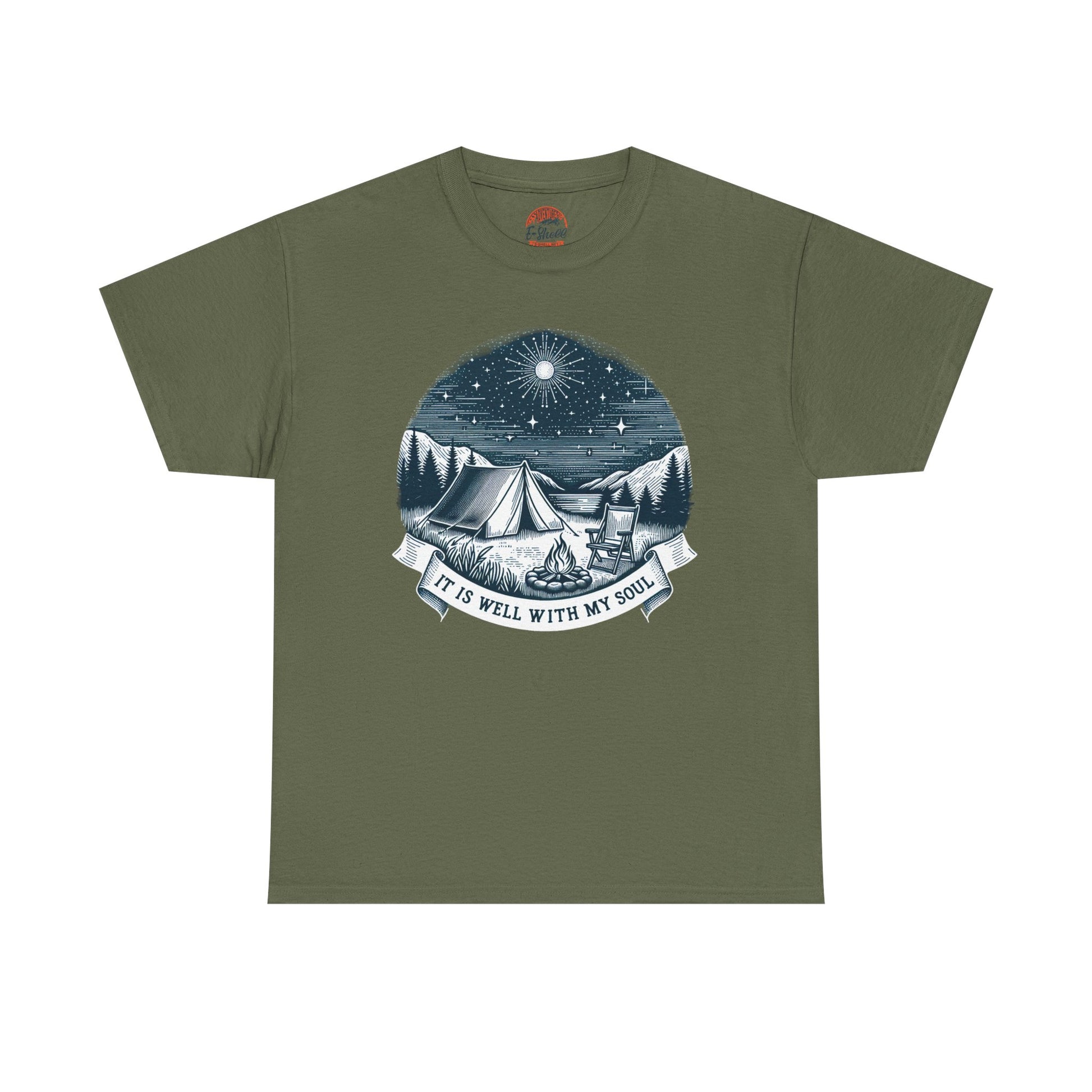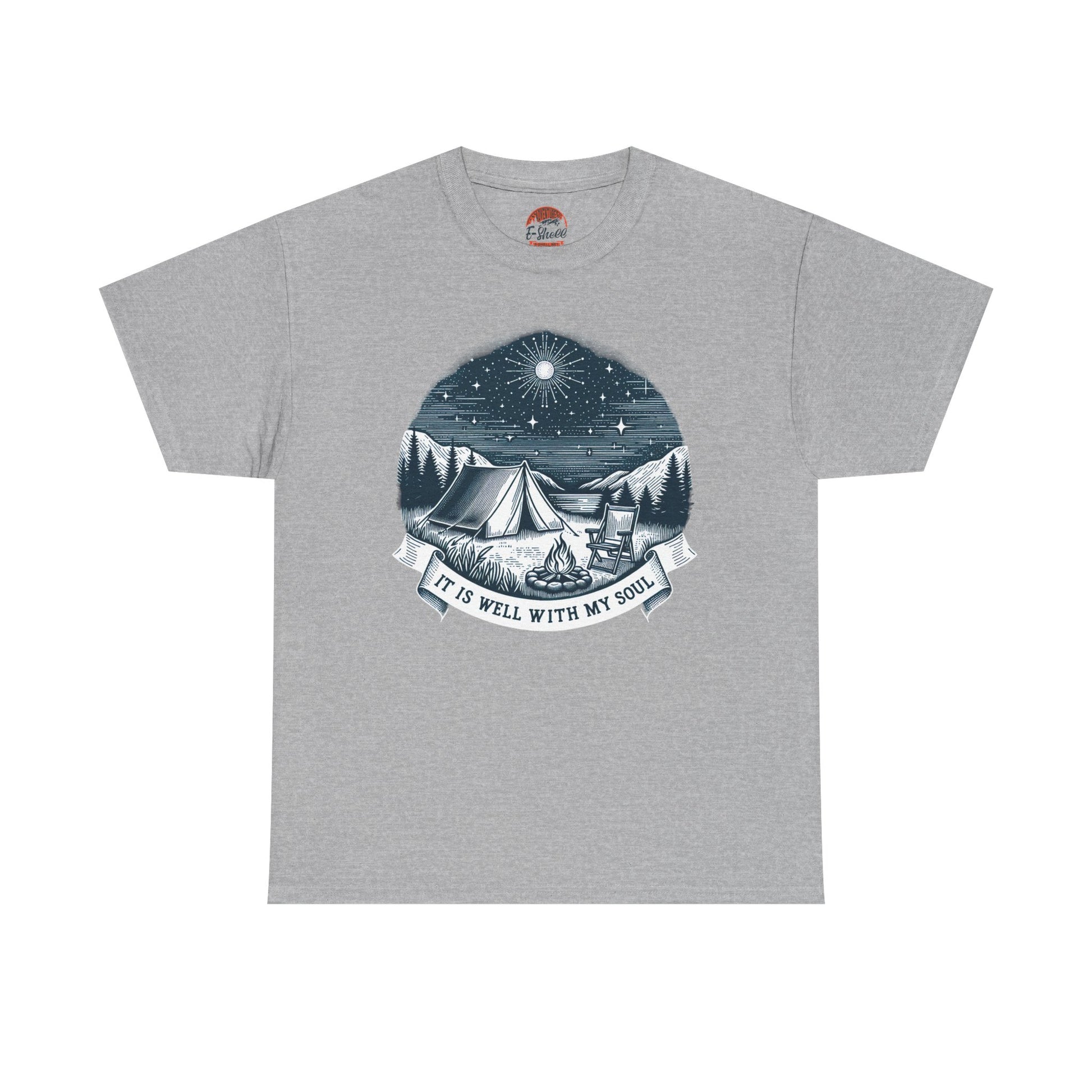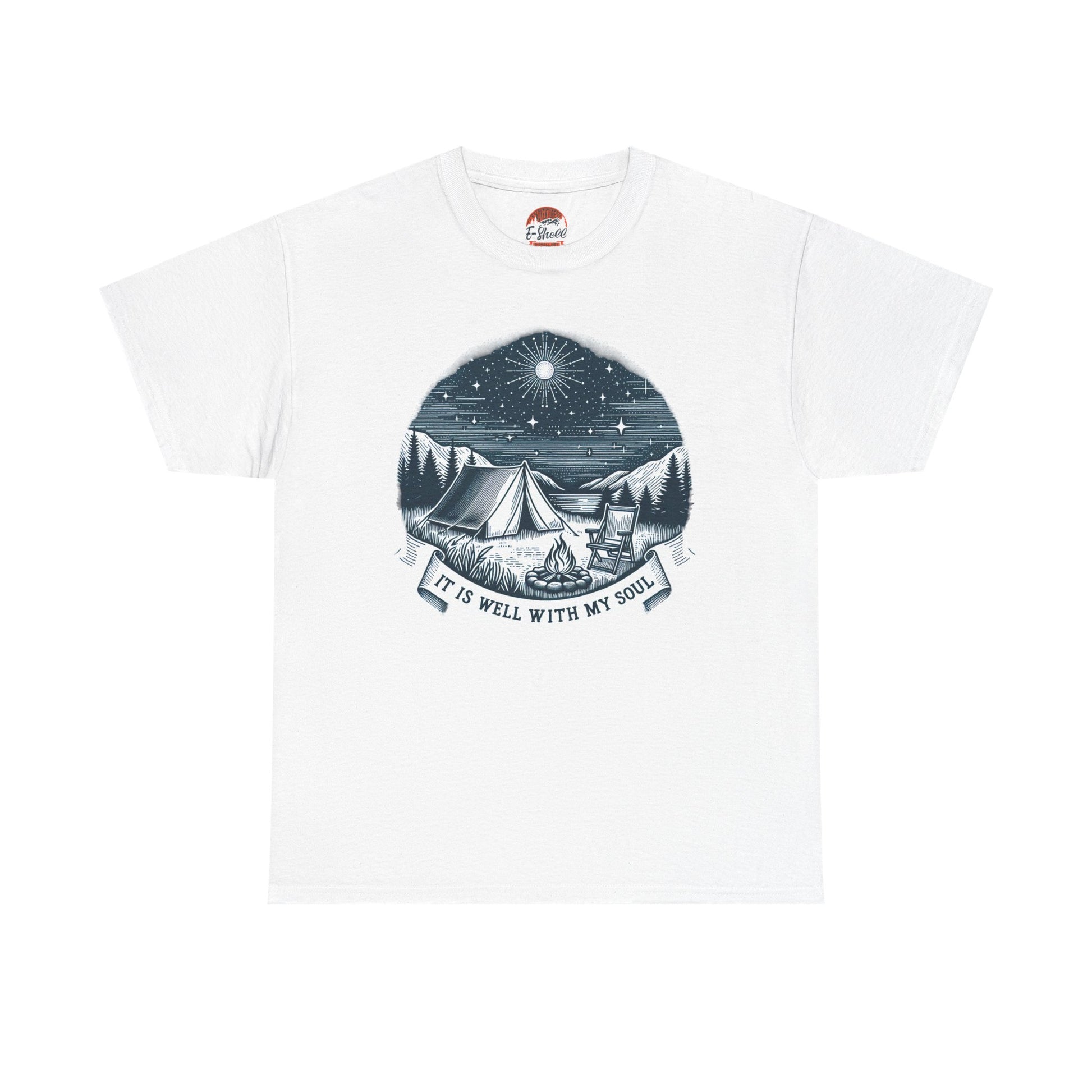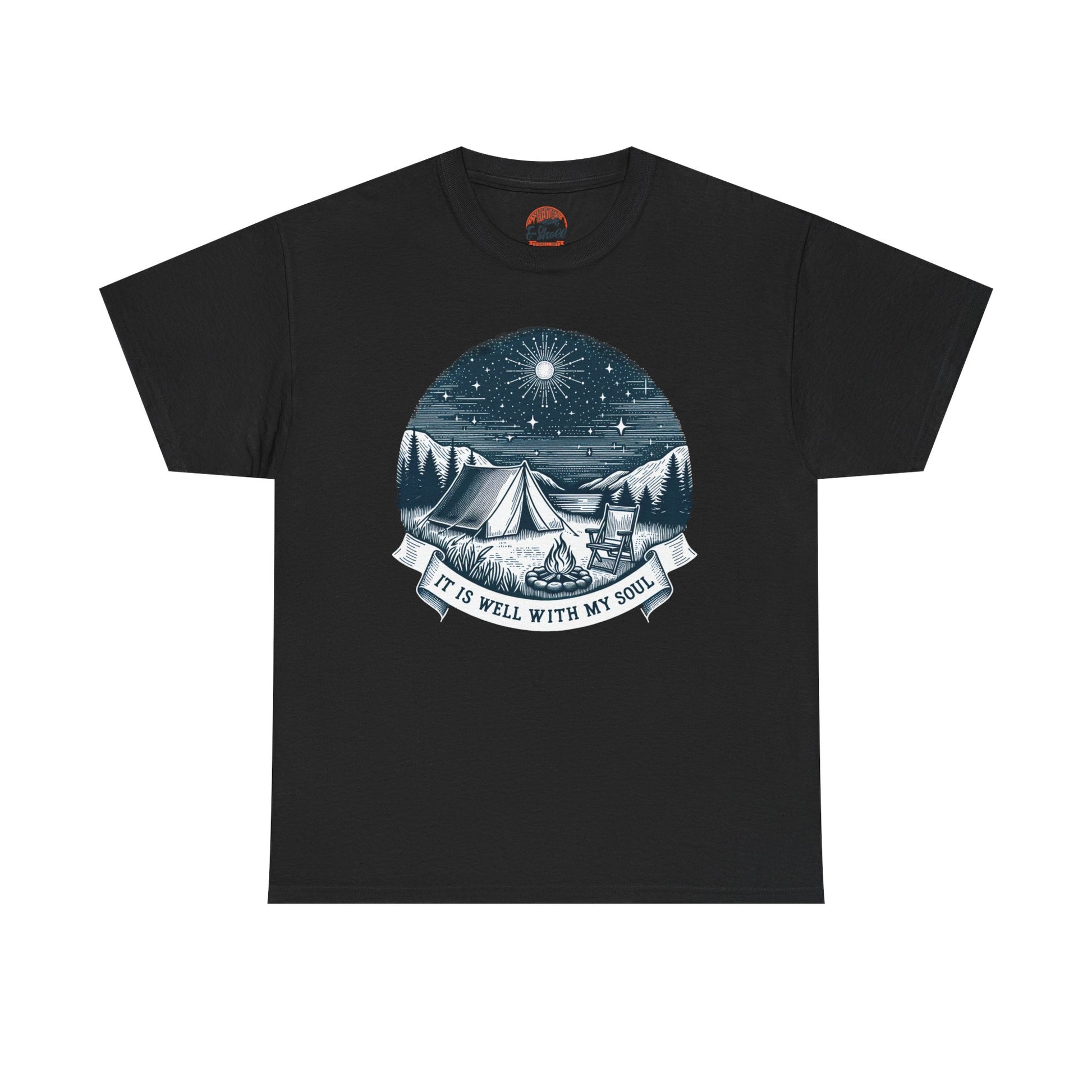 Introducing a cozy Unisex Heavy Cotton Tee that radiates comfort and style. Featuring a serene camping design with a beautiful night sky, this tee brings a sense of peace and adventure, perfect for nature lovers and outdoor enthusiasts. Its classic fit ensures a relaxed wear that suits both casual outings and semi-formal gatherings. Ideal for gifting on occasions like family reunions, camping trips, or summer festivals, this shirt is a thoughtful choice for anyone who values both comfort and aesthetic appeal. Wear it during relaxing weekends, laid-back get-togethers, or as a comforting reminder of fond memories in the great outdoors.